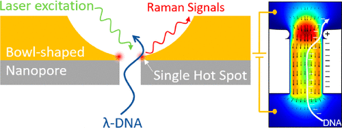 Plasmonic Bowl-Shaped Nanopore for Raman Detection of Single DNA Molecules in Flow-Through